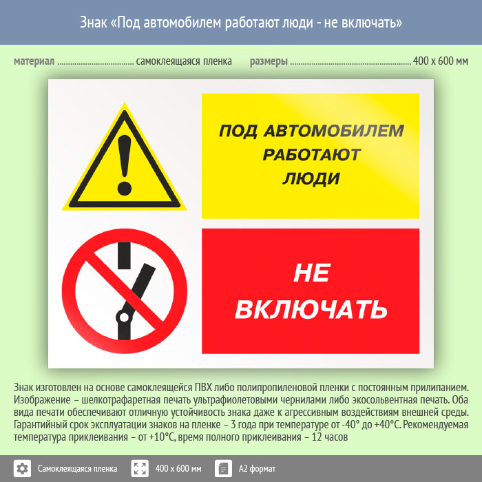 Знак «Под автомобилем работают люди - не включать», КЗ-65 (пленка, 600х400 мм) в Пензе купить