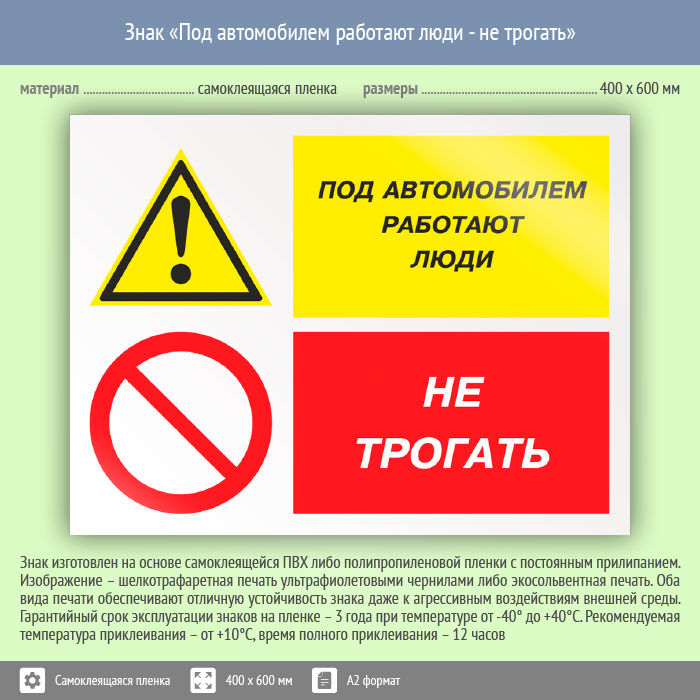 Знак «Под автомобилем работают люди - не трогать», КЗ-66 (пленка, 600х400 мм) в Пензе купить
