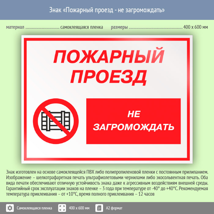 Знак «Пожарный проезд - не загромождать», КЗ-67 (пленка, 600х400 мм) в Пензе купить