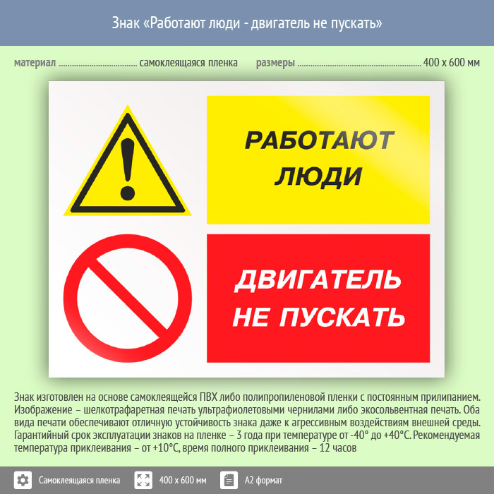 Знак «Работают люди - двигатель не пускать», КЗ-82 (пленка, 600х400 мм) в Пензе купить