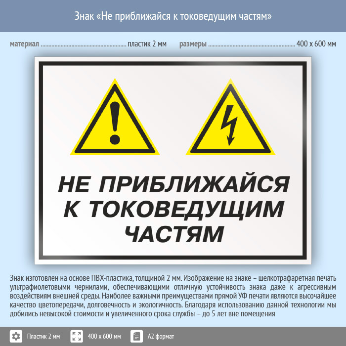 Знак «Не приближайся к токоведущим частям», КЗ-29 (пластик, 600х400 мм) в Пензе купить