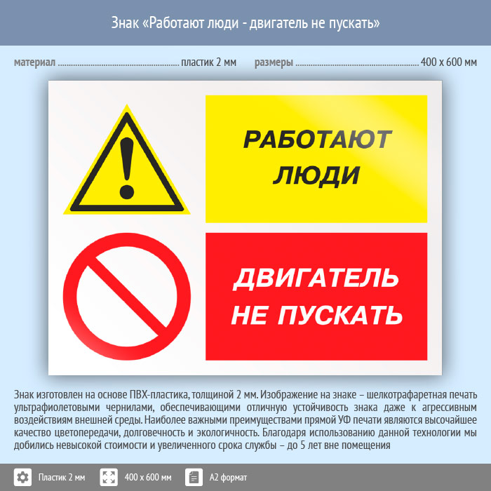 Знак «Работают люди - двигатель не пускать», КЗ-82 (пластик, 600х400 мм) в Пензе купить