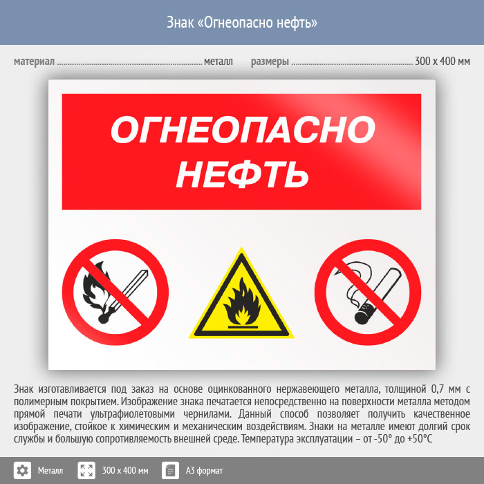 Знак «Огнеопасно нефть», КЗ-31 (металл, 400х300 мм) в Пензе купить