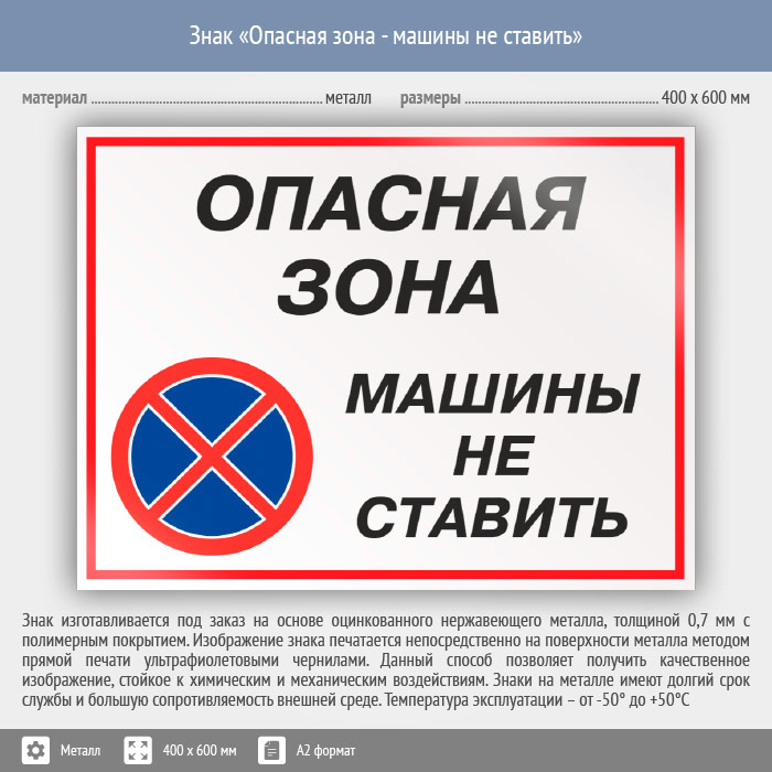 Знак «Опасная зона - машины не ставить», КЗ-32 (металл, 600х400 мм) в Пензе купить