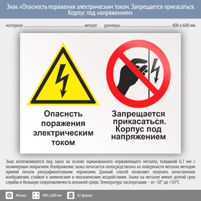 Знак «Опасность поражения электрическим током. Запрещается прикасаться. Корпус под напряжением», КЗ-47 (металл, 600х400 мм) в Пензе купить