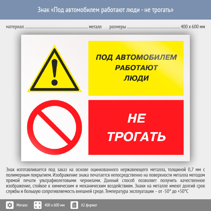 Знак «Под автомобилем работают люди - не трогать», КЗ-66 (металл, 600х400 мм) в Пензе купить
