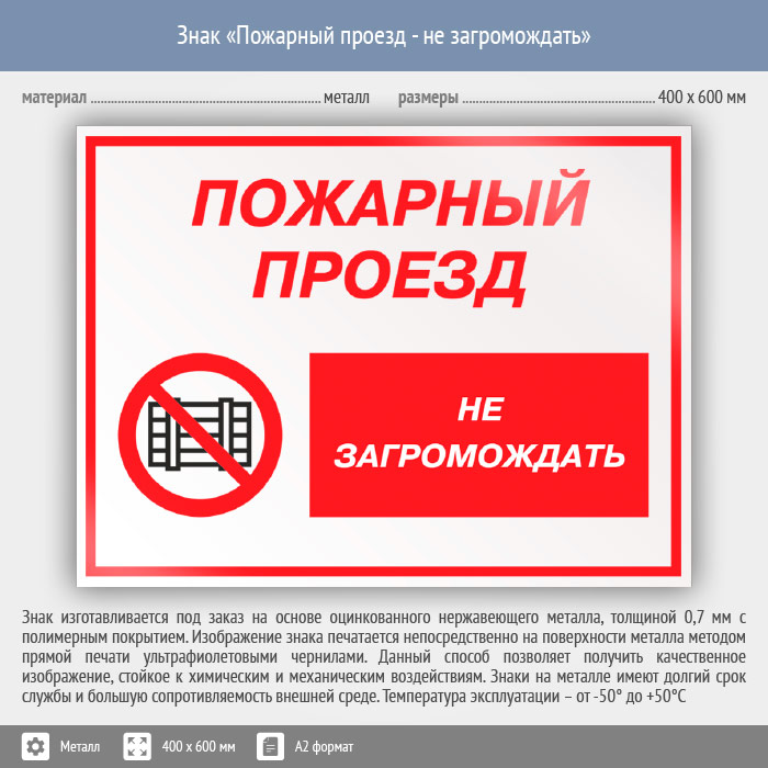 Знак «Пожарный проезд - не загромождать», КЗ-67 (металл, 600х400 мм) в Пензе купить