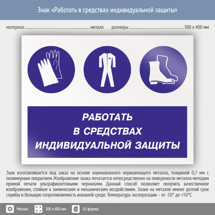 Знак «Работать в средствах индивидуальной защиты», КЗ-81 (металл, 400х300 мм) в Пензе купить