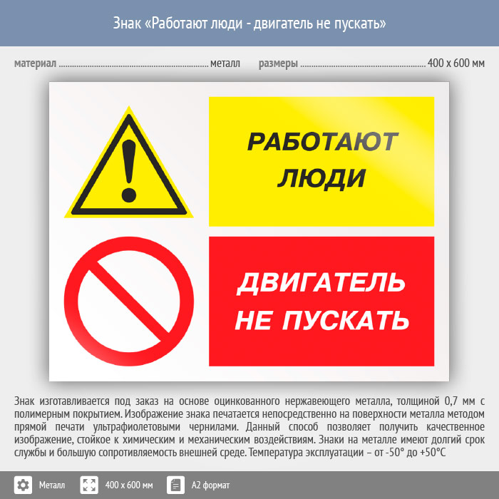 Знак «Работают люди - двигатель не пускать», КЗ-82 (металл, 600х400 мм) в Пензе купить