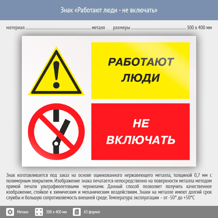 Знак «Работают люди - не включать», КЗ-83 (металл, 400х300 мм) в Пензе купить