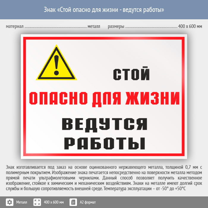 Знак «Стой опасно для жизни - ведутся работы», КЗ-86 (металл, 600х400 мм) в Пензе купить