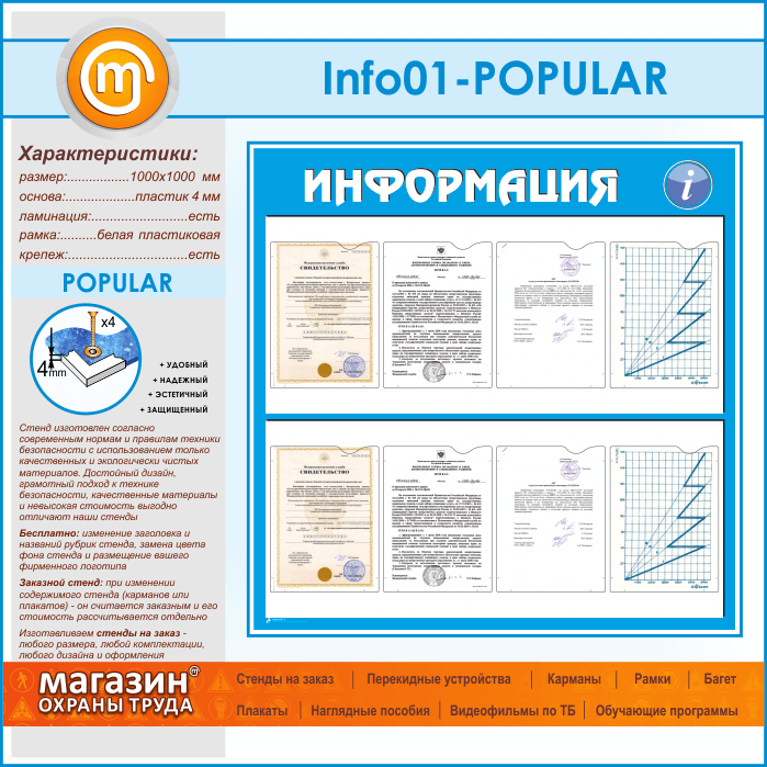 Стенд «Информация» с 8 карманами А4 формата (IN-01-POPULAR) в Пензе купить