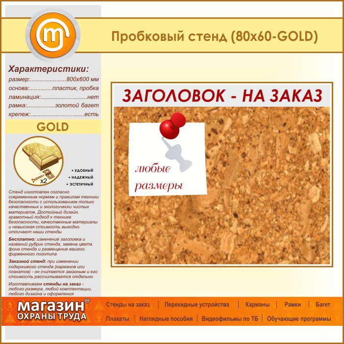 Пробковая доска с заголовком, 80х60 см (IN-06-GOLD) в Пензе купить