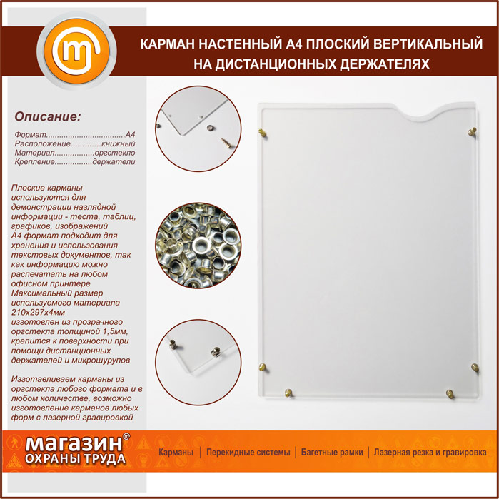 Карман настенный А4 плоский вертикальный на дистанционных держателях в Пензе купить