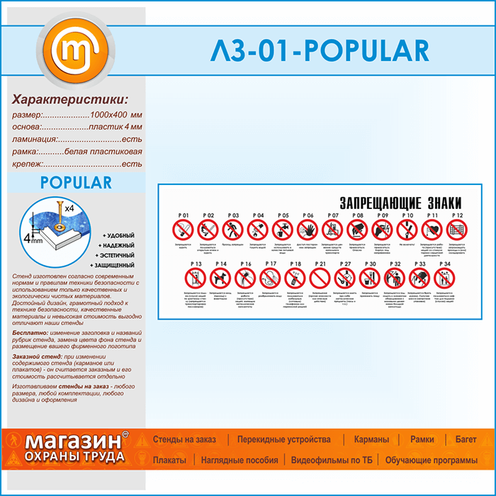 Стенд «Запрещающие знаки» (LZ-01-POPULAR) в Пензе купить