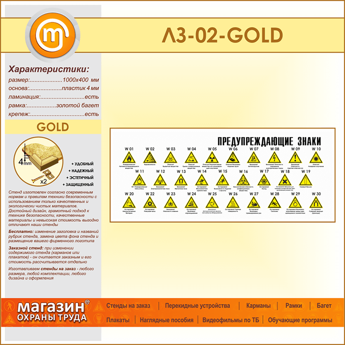 Стенд «Предупреждающие знаки» (LZ-02-GOLD) в Пензе купить