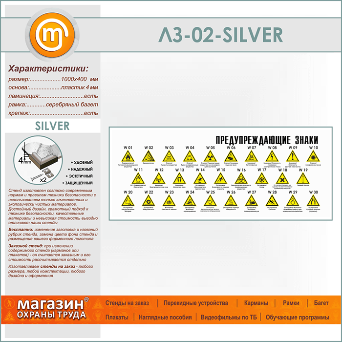 Стенд «Предупреждающие знаки» (LZ-02-SILVER) в Пензе купить