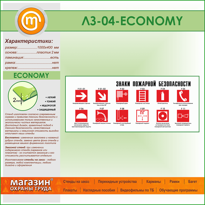 Стенд «Знаки пожарной безопасности» (LZ-04-ECONOMY) в Пензе купить