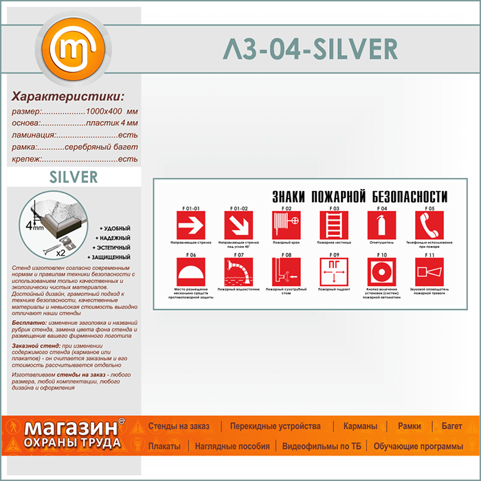 Стенд «Знаки пожарной безопасности» (LZ-04-SILVER) в Пензе купить