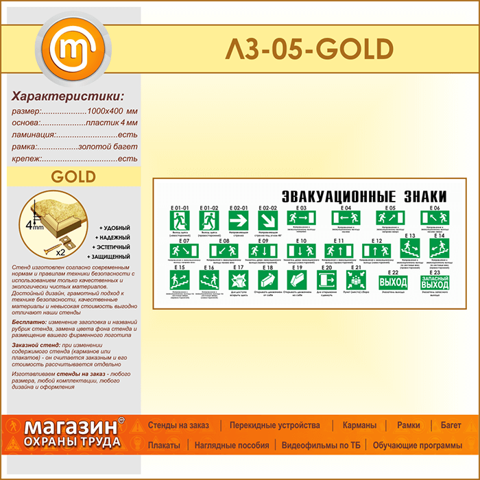 Стенд «Эвакуационные знаки» (LZ-05-GOLD) в Пензе купить