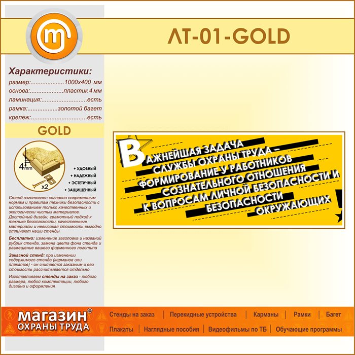 Лозунг «Важнейшая задача службы охраны труда...» (LT-01-GOLD) в Пензе купить