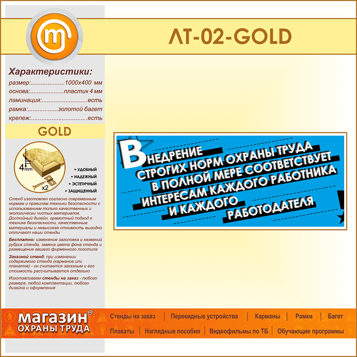 Лозунг «Внедрение строгих норм охраны труда...» (LT-02-GOLD) в Пензе купить