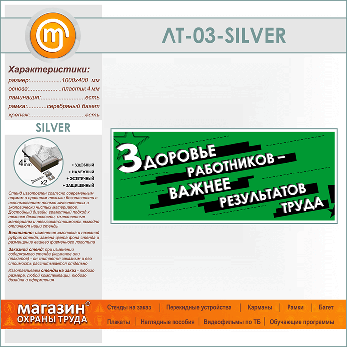 Лозунг «Здоровье работников - важнее результатов труда» (LT-03-SILVER) в Пензе купить