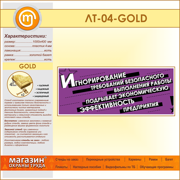Лозунг «Игнорирование безопасного выполнения работы...» (LT-04-GOLD) в Пензе купить