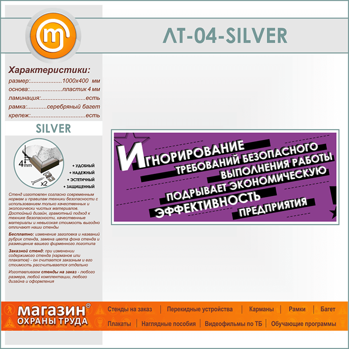 Лозунг «Игнорирование безопасного выполнения работы...» (LT-04-SILVER) в Пензе купить