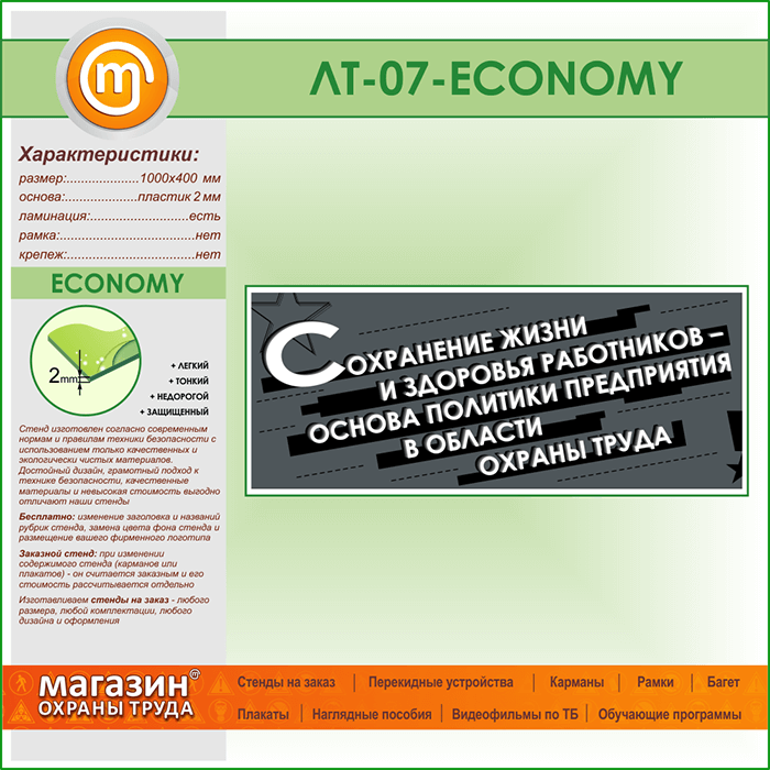 Лозунг «Сохранение жизни и здоровья работников...» (LT-07-ECONOMY) в Пензе купить