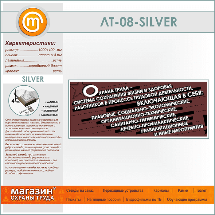 Лозунг «Охрана труда - система сохранения жизни и здоровья...» (LT-08-SILVER) в Пензе купить