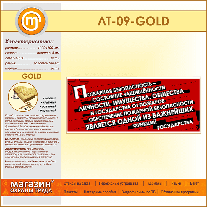 Лозунг «Пожарная безопасность - состояние защищенности...» (LT-09-GOLD) в Пензе купить