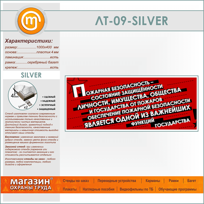 Лозунг «Пожарная безопасность - состояние защищенности...» (LT-09-SILVER) в Пензе купить