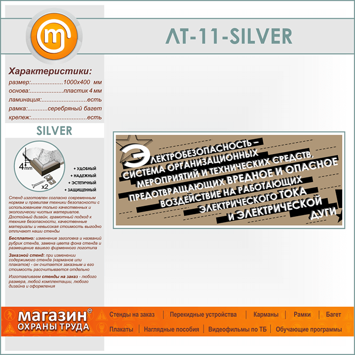 Лозунг «Электробезопасность - система мероприятий...» (LT-11-SILVER) в Пензе купить