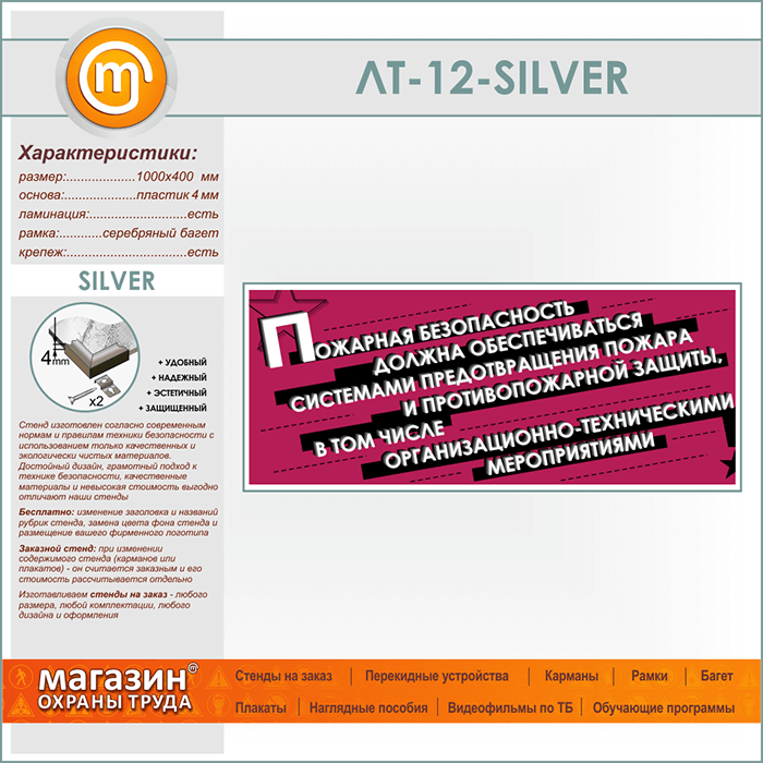Лозунг «Пожарная безопасность должна обеспечиваться...» (LT-12-SILVER) в Пензе купить