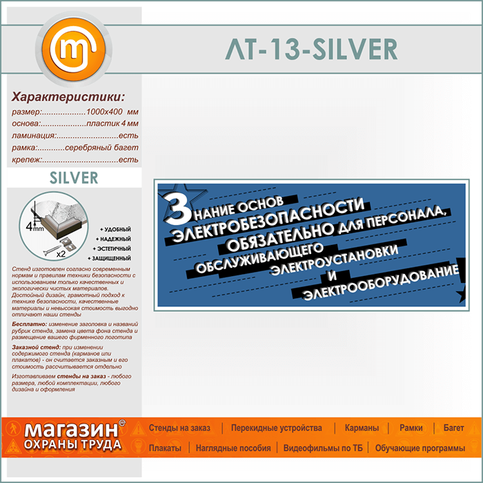 Лозунг «Знание основ электробезопасности обязательно...» (LT-13-SILVER) в Пензе купить