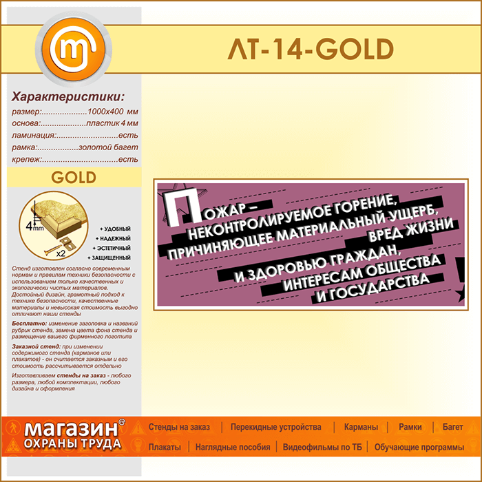 Лозунг «Пожар - неконтроллируемое горение...» (LT-14-GOLD) в Пензе купить