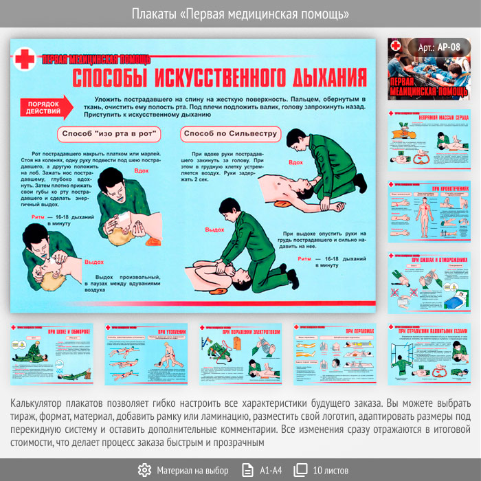 Плакаты «Первая медицинская помощь» (АР-08, 10 листов) в Пензе купить