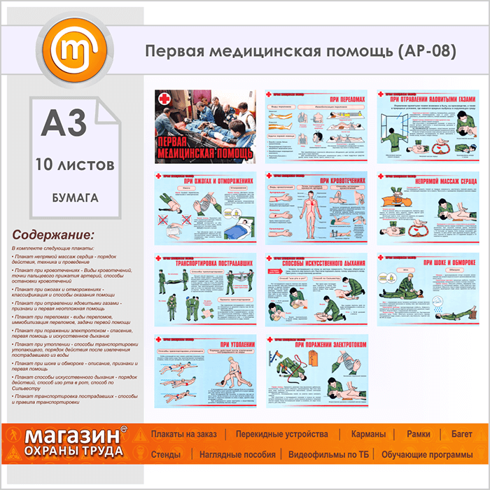 Плакаты «Первая медицинская помощь» (АР-08, бумага, А3, 10 листов) в Пензе купить