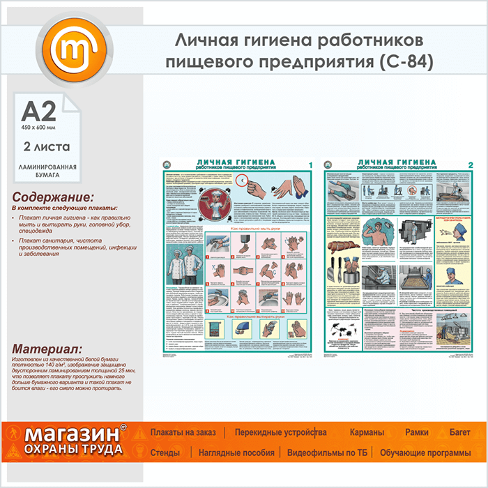 Плакаты «Личная гигиена работников пищевого предприятия» (С-84, ламинированная бумага, А2, 2 листа) в Пензе купить