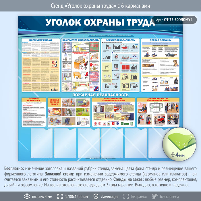 Стенд «Уголок охраны труда» с 6 карманами (OT-33-ECONOMY2) в Пензе купить