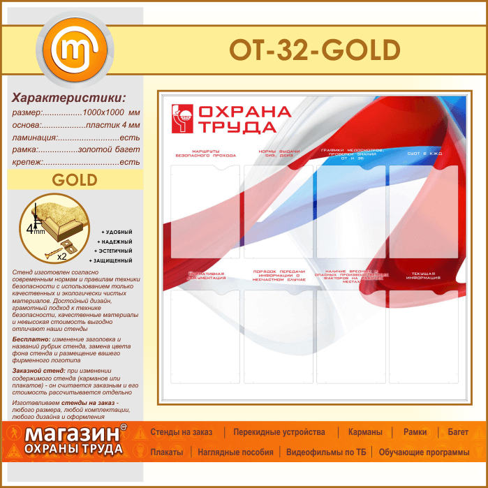 Стенд «Охрана труда» с 8 карманами (OT-32-GOLD) в Пензе купить
