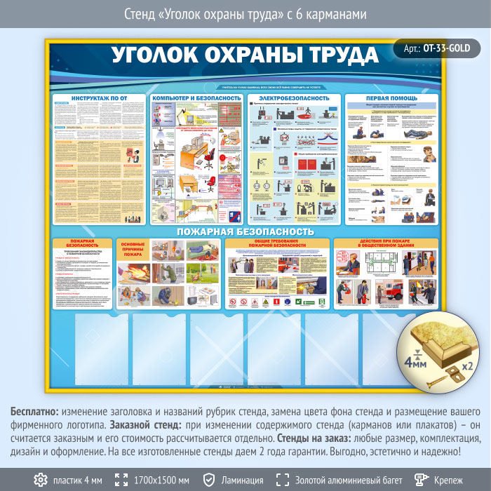 Стенд «Уголок охраны труда» с 6 карманами (OT-33-GOLD) в Пензе купить