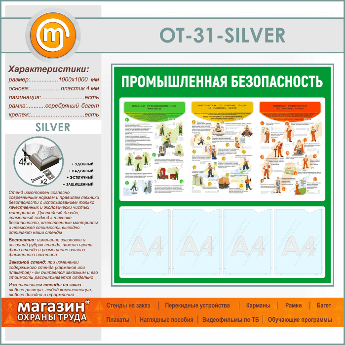Стенд «Промышленная безопасность» с 4 карманами (OT-31-SILVER) в Пензе купить