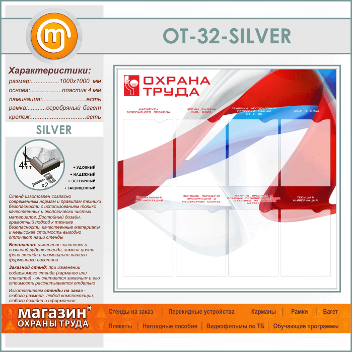 Стенд «Охрана труда» с 8 карманами (OT-32-SILVER) в Пензе купить