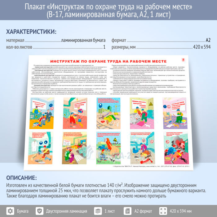 Плакат «Инструктаж по охране труда на рабочем месте» (В-17, ламинированная бумага, А2, 1 лист) в Пензе купить