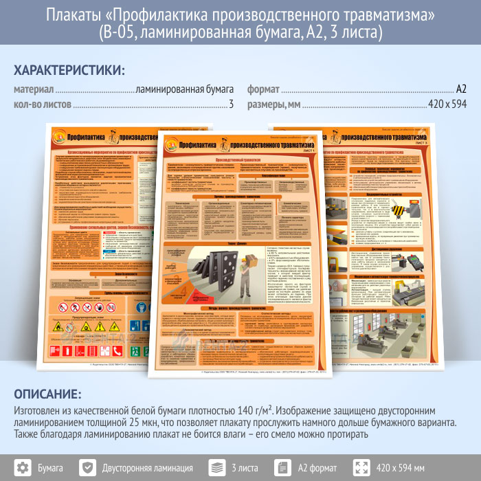 Плакаты «Профилактика производственного травматизма» (В-05, ламинированная бумага, А2, 3 листа) в Пензе купить