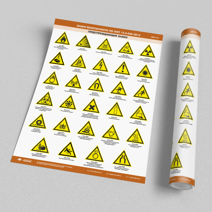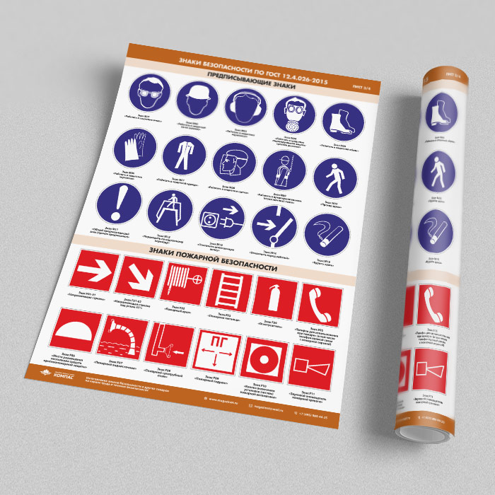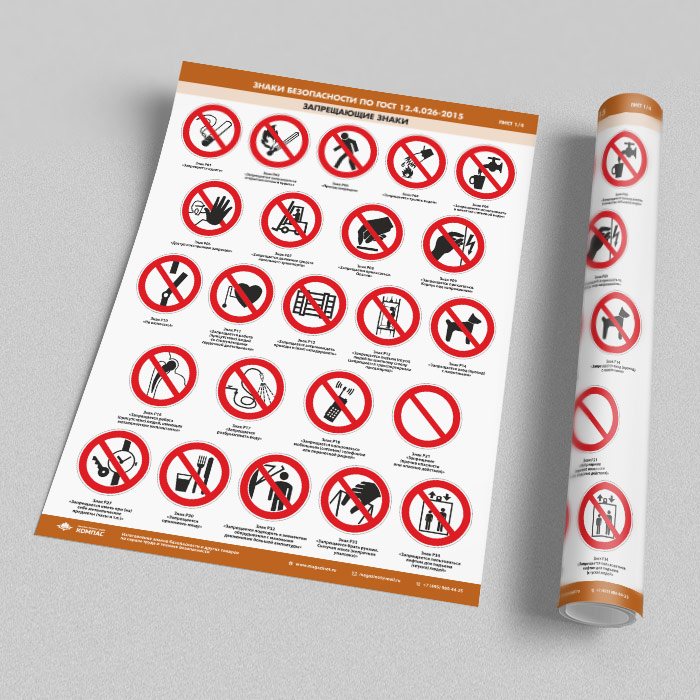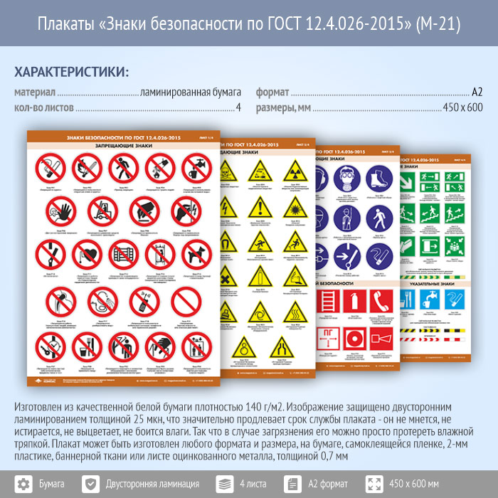 Плакаты «Знаки безопасности по ГОСТ 12.4.026-2015» (М-21, ламинированная бумага, А2, 4 листа) в Пензе купить