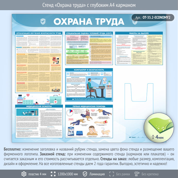 Стенд «Охрана труда» с глубоким А4 карманом (OT-35.2-ECONOMY2) в Пензе купить
