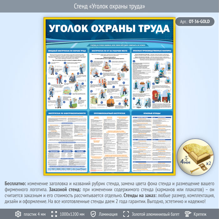 Стенд «Уголок охраны труда» (OT-36-GOLD) в Пензе купить